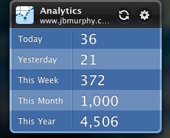 I have been using this Analytics Widget on my dashboard and I just hit 1000 visits in a month! I know that is nothing in compared to a real site, but it is a milestone (in my mind)!